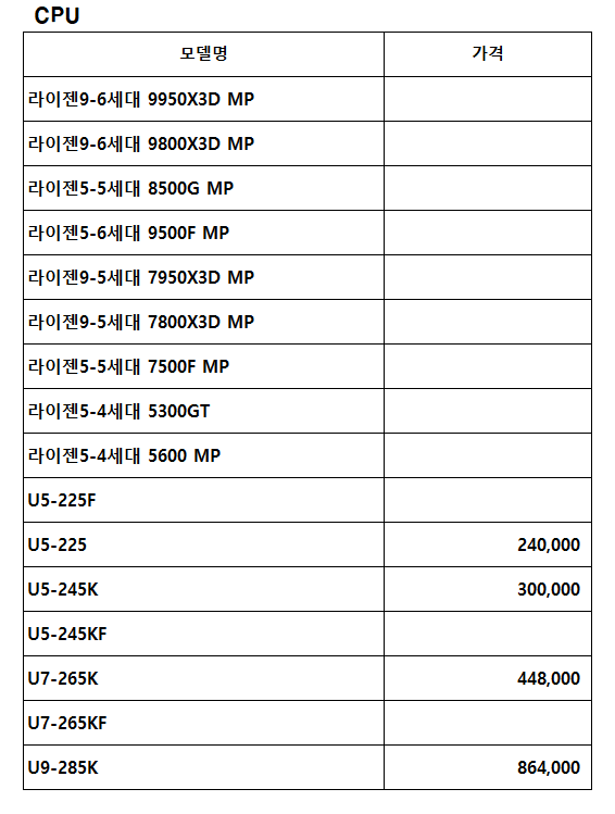 가격표의 가격은 수시로 변경될 수 있으니 주문 시 확인하시기 바랍니다.