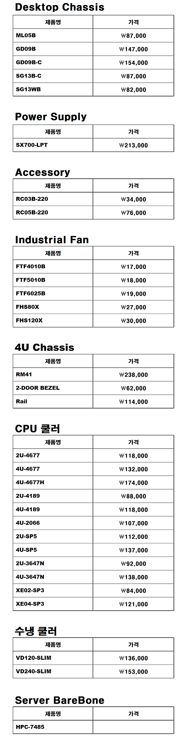 가격표의 가격은 수시로 변경될 수 있으니 주문 시 확인하시기 바랍니다.