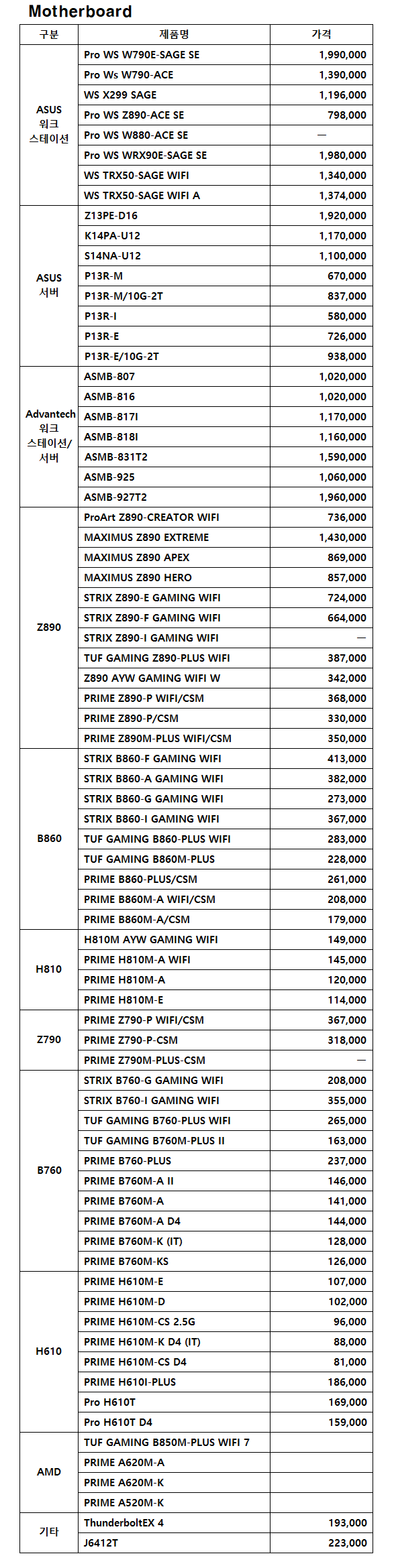ASUS 가격표