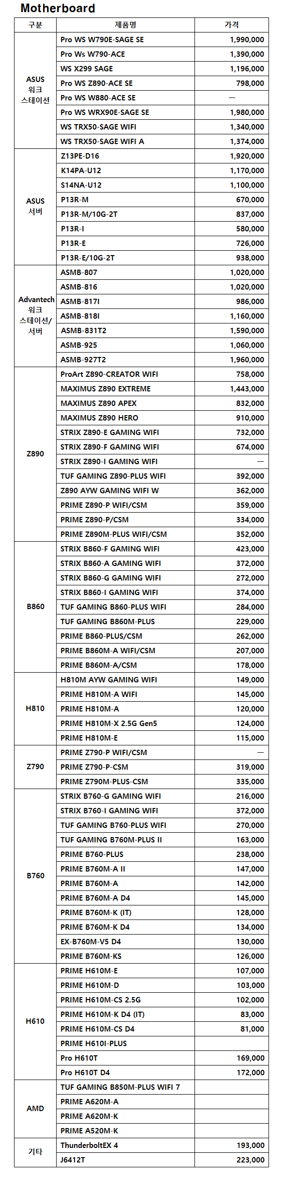 ASUS 가격표