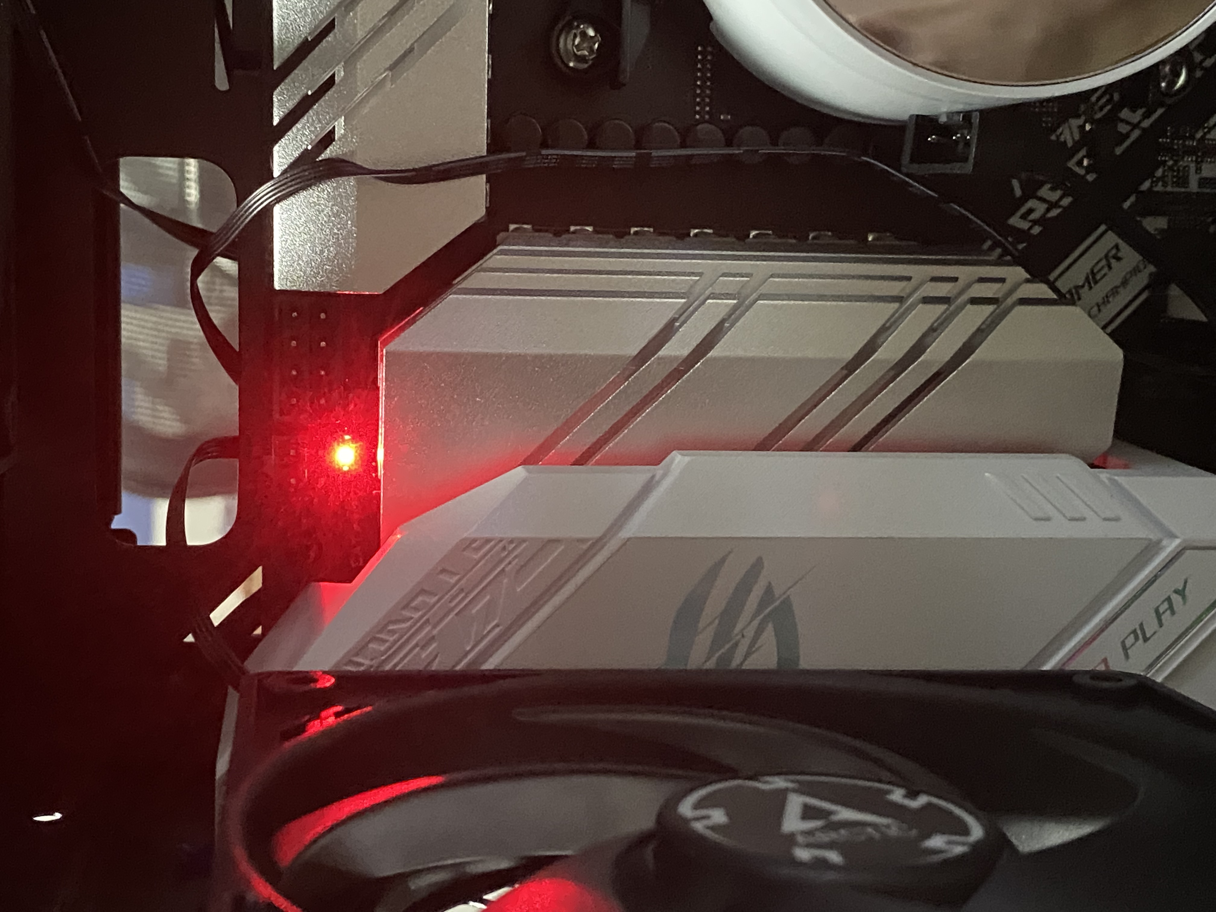 8핀 보조전원 컨넥터에 전원 케이블이 연결되어 있지 않을 경우 LED불이 들어오게 됩니다.nbsp;