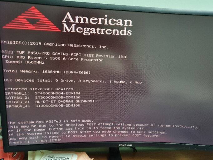 제가 사용하는 데스크탑 pc를 부팅하면 아래 이미지와 같은 화면이 뜨고, F1키를 누르면 bios화면으로 이동합니다.